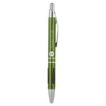 These custom printerd metal pens feature an anodized aluminum barrel. They have a gloss finish, silver trim and stylus tip with black ink.